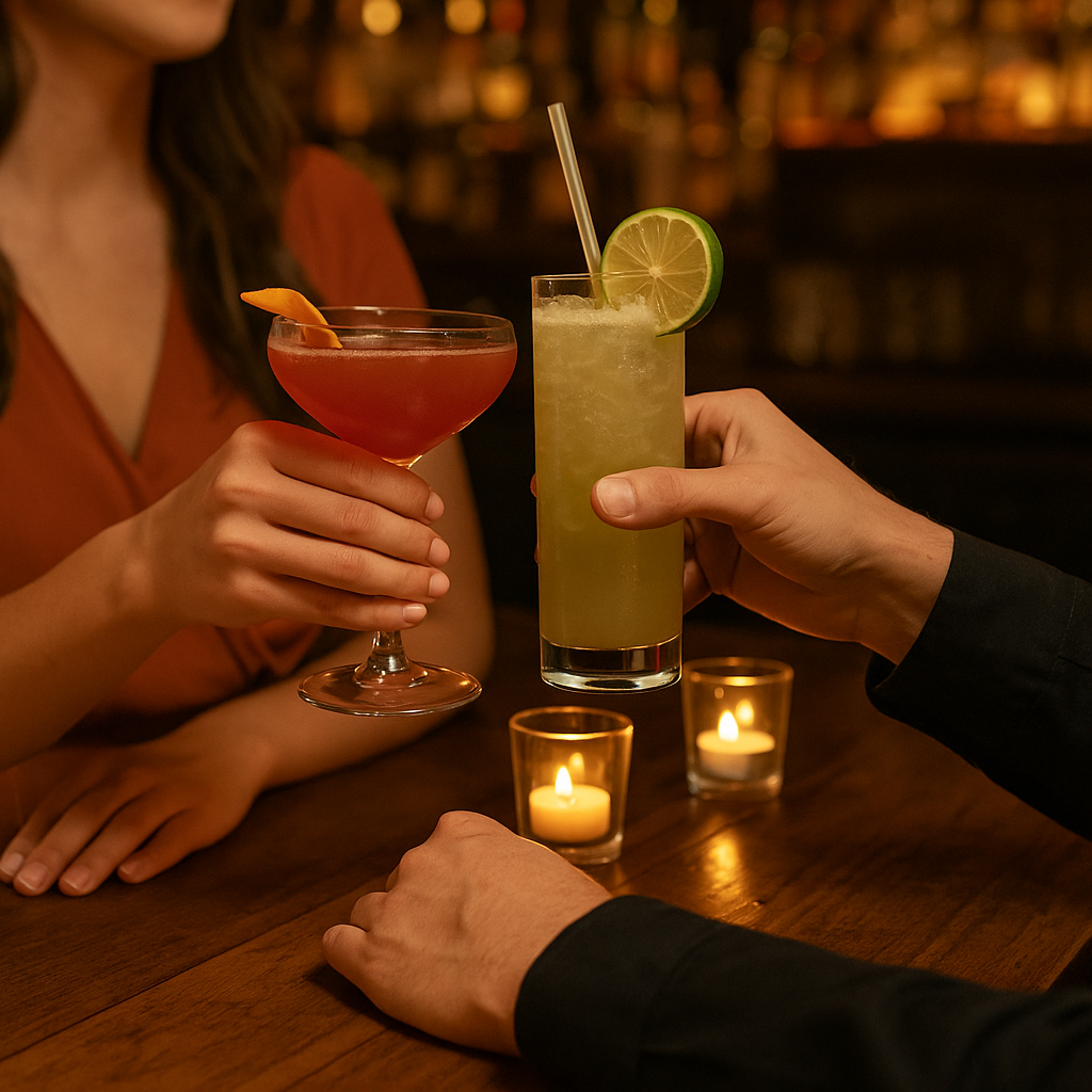 Cocktail en amoureux dans un cadre idyllique. Dégustez des cocktails artisanaux préparés avec des fruits tropicaux frais et rhums locaux. Ambiance intimiste avec vue panoramique sur la jungle ou l'océan. Moment parfait pour admirer le coucher de soleil et savourer l'instant à deux dans une atmosphère détendue.
